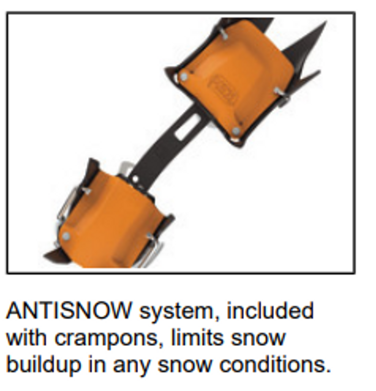 - ANTISNOW system, included with crampons, limits snow buildup in any snow conditions